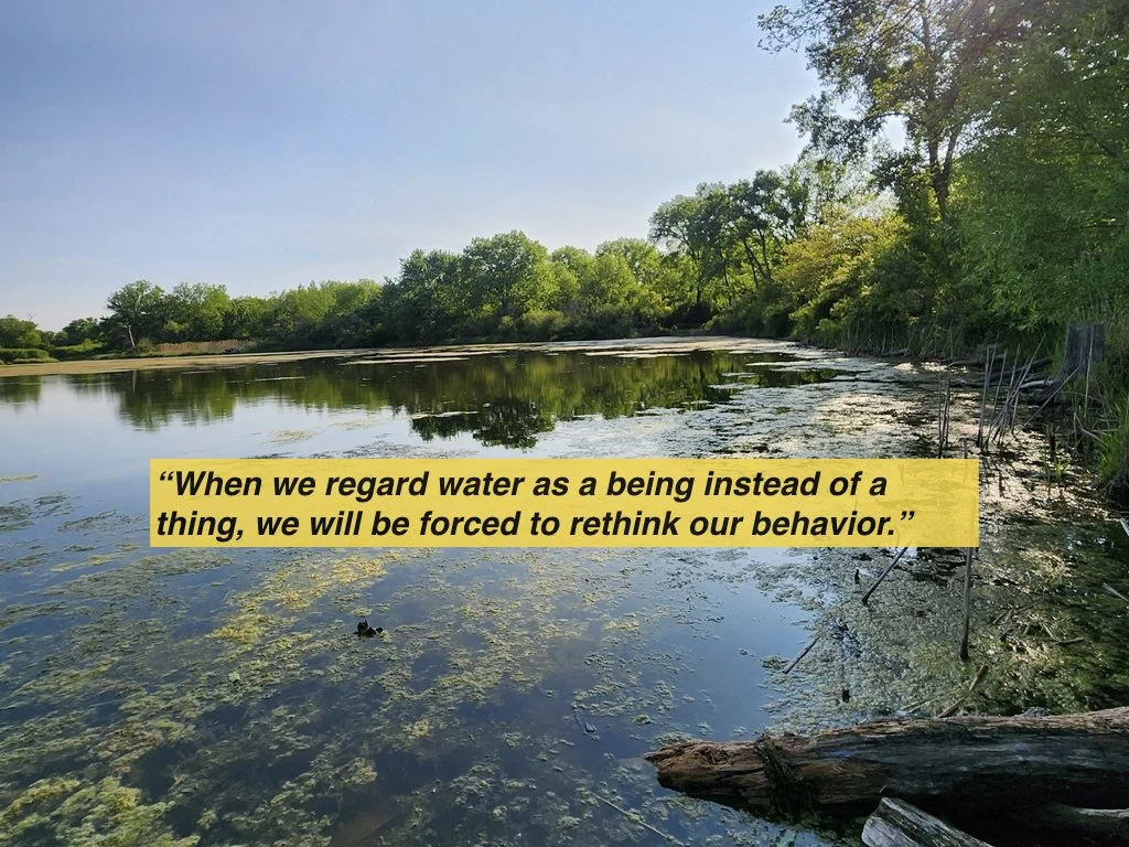 About half of Wonderland is water in the form of ponds and wetlands, including a fen. The water that emanates from our spring fed ponds travels to the Nippersink creek and then all the way to the Mississippi. We have a responsibility to our waterways but also, as our waterways cycle, sinter, revive and provide, they are showing us the way to collectively practice making hope and taking care of each other.